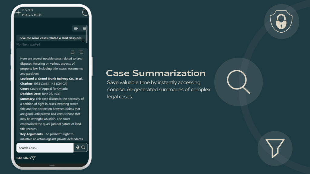 With tools like Case Polaris, Case Summarization, and Document Upload & Analysis, lawyers can: